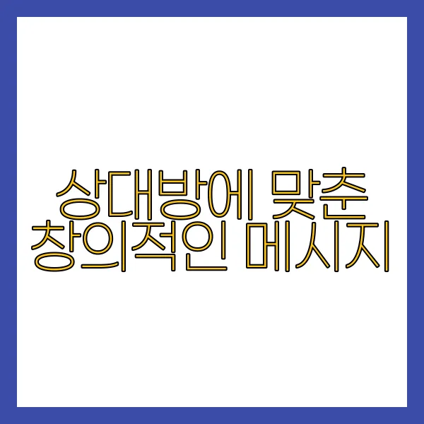 두 번째로, 상대방의 관심사나 취미를 반영한 메시지를 작성하는 것도 훌륭합니다. 상대방이 카메라 촬영을 좋아한다면 "눈 내리는 풍경을 놓치지 않고 기록해보는 건 어떨까?"라며 제안하는 방식이며, 그들의 흥미를 더욱 증대시킬 수 있습니다. 나아가 그들이 소셜 미디어에 공유하고 싶어할만한 요소를 고려한 메시지를 보내면 더욱 긍정적인 반응을 얻을 수 있습니다.
