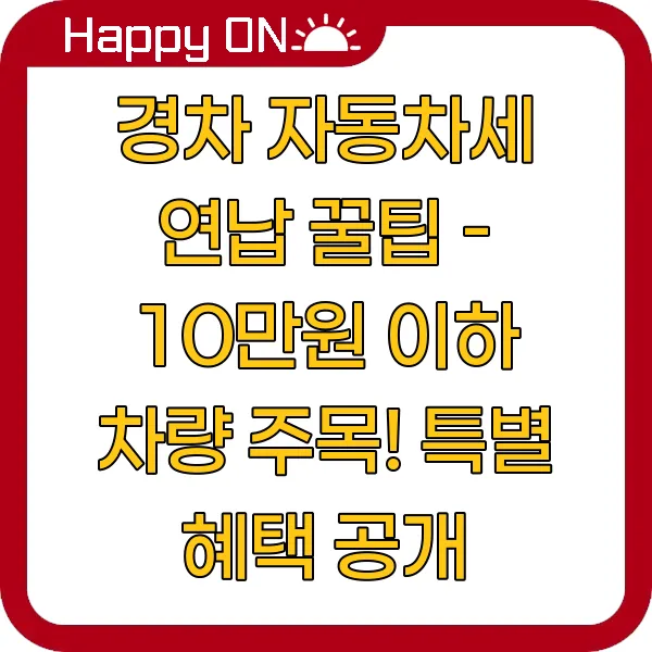 경차 자동차세 연납 꿀팁 - 10만원 이하 차량 주목! 특별 혜택 공개