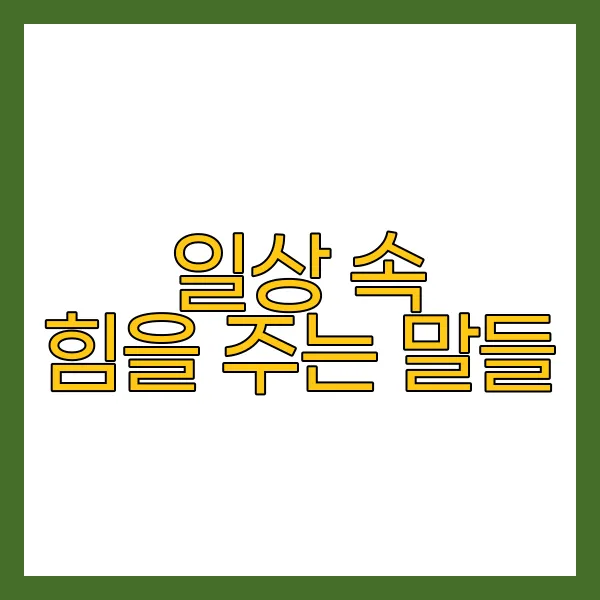 이처럼 일상에서 힘을 주는 말들을 발견하고 활용하는 것은 개인적인 성장뿐만 아니라 주변 사람들에게도 긍정적인 영향을 미칠 수 있습니다. 다른 사람에게 긍정적인 말을 건네는 것도 중요하지만, 스스로를 위한 내적 대화에서 긍정적인 언어를 사용하는 것도 큰 영향을 미칠 수 있습니다. “나는 할 수 있어!”, “오늘도 잘 할 거야!”라는 말을 반복하며 자신의 마음을 다독이는 것이 큰 도움이 됩니다. 이러한 심리적 자원은 개인의 목표 달성뿐만 아니라, 스트레스를 감소시키고 전반적인 생활 만족도를 높여 줄 것입니다.