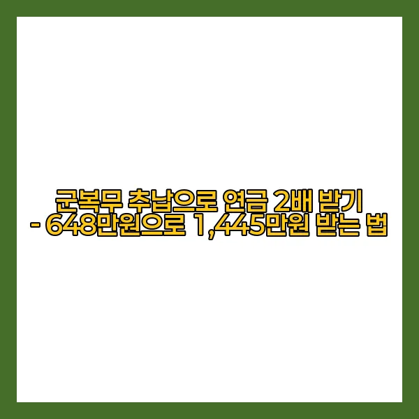 혜택을 받지 않고 넘어가기 전에, 군복무 추납에 대한 깊은 이해를 바탕으로 내 연금을 두 배로 늘리는 기회를 꼭 잡아 보시길 바랍니다! 💰✨
