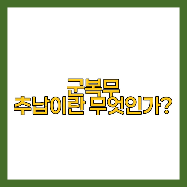 군복무 추납은 많은 이들에게 잘 알려지지 않은 제도이지만, 그 혜택은 상당히 큽니다. 자신이 근무한 군복무 기간을 내 연금에 추가하여 보상을 두 배로 늘릴 수 있는 기회를 제공하기 때문입니다. 특히, 648만원의 추납을 통해 여러분은 1,445만원의 연금을 받을 수 있는 방법에 대해 알아보는 것은 매우 가치 있는 일입니다. 연금 수령 시의 현명한 선택이 미래의 금융 안전망을 더욱 견고히 할 수 있습니다. 이번 포스팅에서는 군복무 추납이란 무엇인지, 혜택과 조건, 실제 수령 금액 비교 및 신청 방법을 심층적으로 다루어 보겠습니다. 이제 군복무 추납의 세계로 함께 들어가 보도록 하겠습니다.
