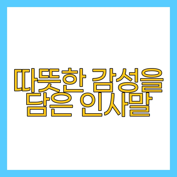 따뜻한 감성의 인사말은 단순히 '안녕하세요'와 같은 형식적인 표현에서 벗어나, 상대방의 기분을 생각하는 마음이 담겨야 합니다. 특정한 문구로는 "오늘 하루도 행복한 일 가득하시길 바랍니다!"나 "당신의 미소가 세상을 밝힙니다!"와 같은 표현을 사용할 수 있습니다. 이러한 문구들은 상대방의 마음을 따뜻하게 하고, 소중한 존재임을 다시 한 번 일깨우는 역할을 합니다.