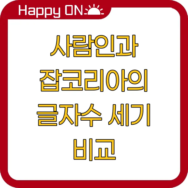 채용 관련 플랫폼들은 공고 작성 시 글자 수 제한이 있는 경우가 많습니다. 이를 위해 각 플랫폼에서는 글자 수를 세는 기능을 제공하고 있습니다. 오늘은 사람인과 잡코리아의 글자 수 세기 기능을 비교 분석 해 보겠습니다.