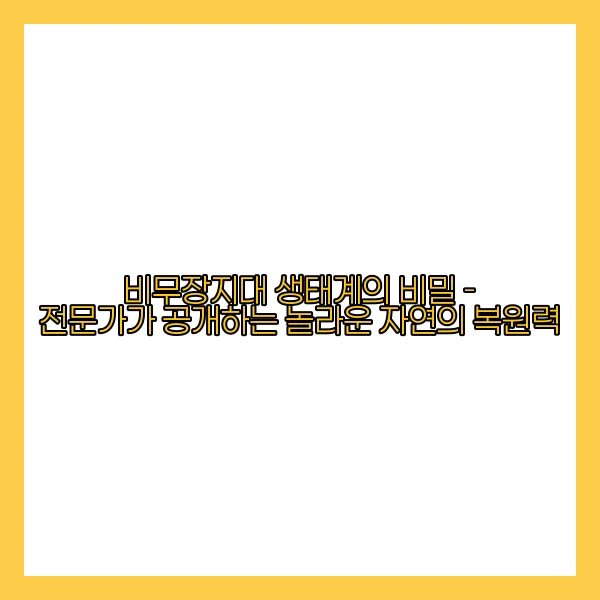 이른바 '자연의 복원력'은 비무장지대 생태계의 주요한 특징 중 하나입니다. 놀랍게도, 인류가 개입하지 않은 환경은 스스로 회복하며 진화할 수 있는 잠재력을 가지고 있다는 것을 보여줍니다. 이러한 점은 다른 지역의 생태계 보존과 복원에 필요한 교훈을 제공하고 있습니다. 🌼🦋