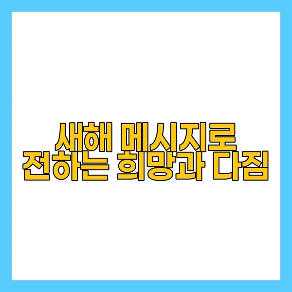 새해 메시지는 이러한 희망의 기운을 전하는 중대한 수단입니다. 사랑하는 사람들에게 보낼 수 있는 메시지를 통해 여러분의 다짐과 긍정적인 에너지를 전할 수 있죠. “2025년에는 더욱 건강하고 행복해질 것”이라는 다짐을 담은 메시지를 보내 보세요! 이러한 메시지는 상대방에게도 긍정적인 영향을 미치며, 함께 새로운 목표를 향해 나아가는 원동력이 될 수 있습니다.