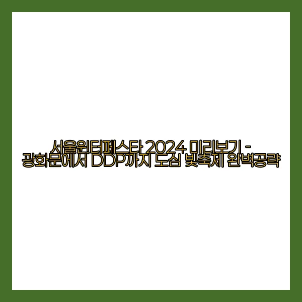 이처럼 한 해를 마무리하며 더욱 특별한 순간을 제공하는 서울윈터페스타를 안전하고 즐겁게 즐기기 위한 팁을 기억하시고, 멋진 겨울밤을 만끽하시기 바랍니다. 지혜로운 준비가 잊지 못할 경험을 만들어줄 것입니다.