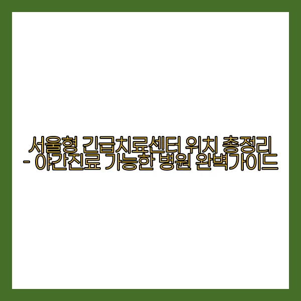 서울형 긴급치료센터 위치 총정리 - 야간진료 가능한 병원 완벽가이드