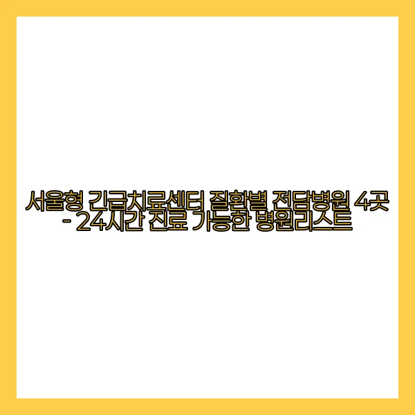 서울형 긴급치료센터 질환별 전담병원 4곳 - 24시간 진료 가능한 병원리스트
