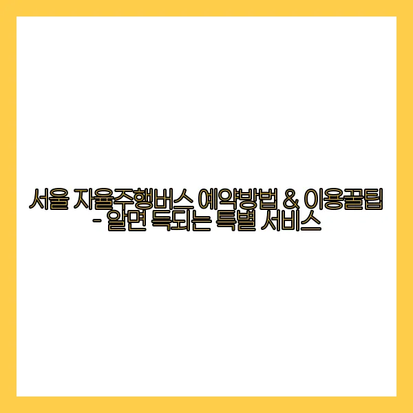 서울 자율주행버스는 우리가 경험할 수 있는 대중교통의 새로운 장을 열고 있습니다. 이러한 편리한 예약 시스템은 더 많은 시민들이 자율주행버스를 이용하도록 할 것입니다! 😊 자율주행버스를 이용해보면, 혁신적인 교통 체험을 통해 더 나은 이동의 자유를 느낄 수 있습니다.