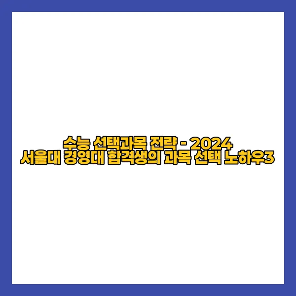 수능 선택과목 전략 - 2024 서울대 경영대 합격생의 과목 선택 노하우3