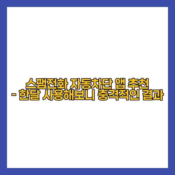 스팸전화 자동차단 앱을 통해 얻은 한 달간의 경험은 매우 의미 있었습니다. 최근 통계에 따르면, 국내에서 발생하는 스팸전화의 비율은 약 40%에 달하고 있으며, 이는 개인의 일상에 큰 불편을 초래하고 있습니다. 이러한 상황에서 스팸전화 자동차단 앱의 필요성은 날로 증가하고 있습니다. 이를 통해 시간과 에너지를 절약하고, 귀찮은 전화로부터 자유로워졌다는 점은 실질적으로 많은 사용자들에게 긍정적인 영향을 끼치고 있습니다.