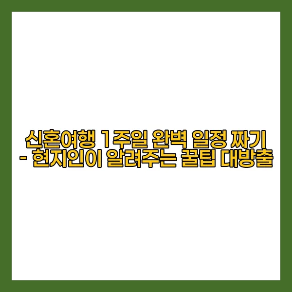 신혼여행은 두 사람의 새로운 시작을 기념하는 특별한 시간입니다. 하지만 완벽한 일정을 짜기란 결코 쉽지 않은 일입니다. 그렇기에 이번 포스트에서는 신혼여행 1주일을 완벽하게 계획하는 방법을 소개하겠습니다. 현지인이 알려주는 꿀팁을 통해 최고의 여행지를 선택하고, 필수 방문 명소와 활동을 파악하는 데 도움을 드릴 것입니다. 또한, 현지 음식과 문화를 직접 체험하여 더욱 풍부한 추억을 만들 수 있는 방법도 함께 알아보겠습니다. 편안한 여행을 위한 여러 팁까지 더해져 신혼여행이 더욱 특별한 경험으로 남을 수 있도록 하겠습니다.