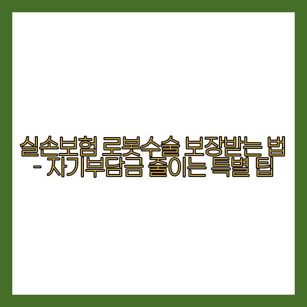 결국, 실손보험을 통한 로봇수술 보장을 위해서는 "철저한 준비, 선제적인 정보 확인, 그리고 보험사와의 적극적 소통"이 핵심입니다. 이러한 팁들을 잘 활용하신다면, 귀하의 소중한 의료비 부담을 줄이고 보다 나은 건강을 누리실 수 있을 것입니다. 점검 후 보장받을 수 있는 다양한 조건과 팁을 바탕으로 실속 있는 보험 혜택을 누리시길 바랍니다! 🌈