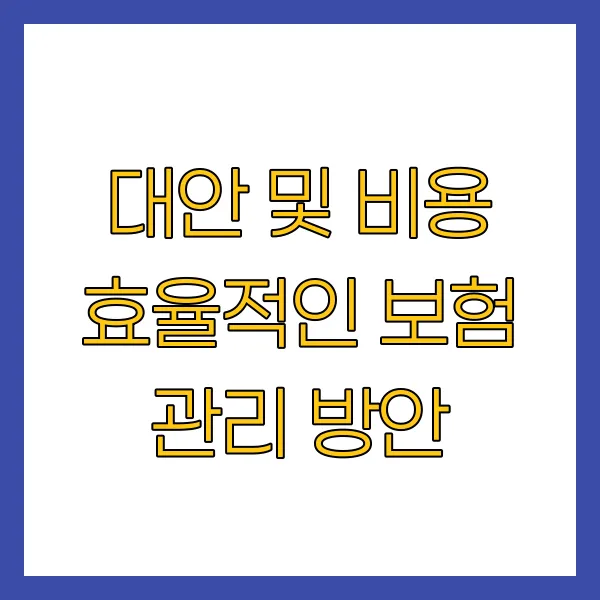 실손보험의 선택에서 비용 효율성은 매우 중요한 요소입니다. 보험 관리 방안으로는 다양한 접근 방식이 있으며, 전략적으로 접근하면 불필요한 지출을 줄일 수 있습니다. 여기에 몇 가지 대안을 제시합니다.