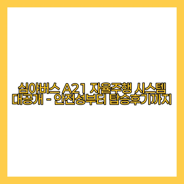 마지막으로, 이러한 기술들은 운전을 신뢰할 수 있도록 돕고 있습니다. A21 자율주행 시스템은 99.9% 이상의 안전성을 목표로 하여, 실제 도로 주행에서도 다양한 테스트를 거쳐 검증된 바 있습니다. 이를 통해 도시 내 심야버스 서비스의 활용도가 급증할 것으로 기대됩니다. 실제 데이터를 기반으로 한 안전성 평가에서 500만km를 이상 주행하며 오차율이 1% 미만이라는 결과도 자랑할 수 있습니다! 📈