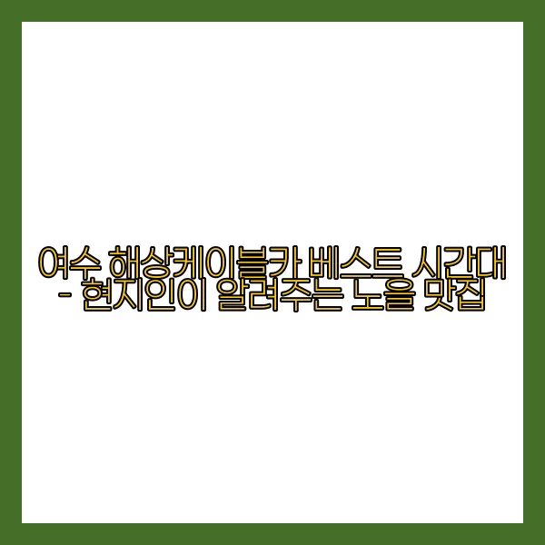 여수 해상케이블카 베스트 시간대 - 현지인이 알려주는 노을 맛집