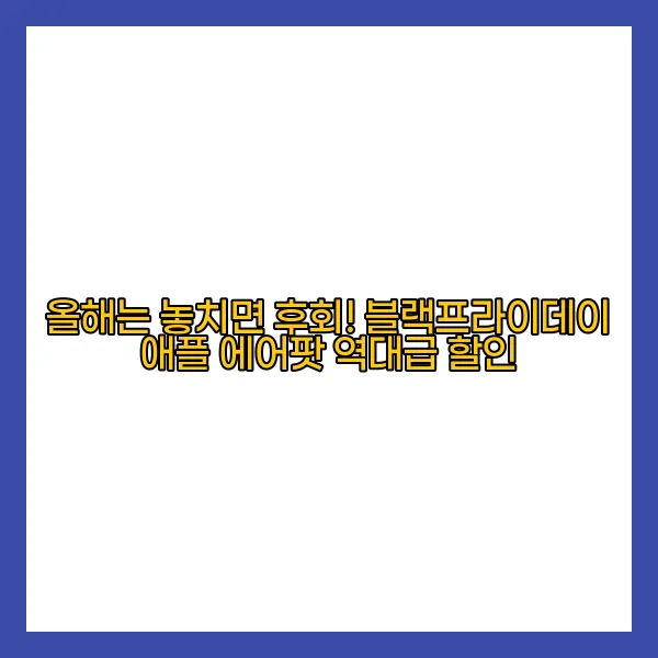 특히나 이번 블랙프라이데이에서는 한정된 수량에 대한 추가 혜택과 함께 특별한 할인 코드를 제공할 예정입니다. 예를 들어, 특정 신용카드를 사용하면 추가 10% 할인이 적용될 수 있으며, 이를 통해 예상을 초과하는 할인폭을 경험할 수 있습니다! 소비자는 이 모든 혜택을 종합적으로 고려하여 최상의 가격으로 에어팟을 구매할 수 있는 찬스를 잡게 됩니다. 👌