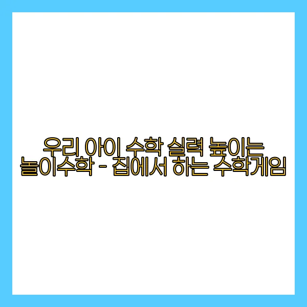 놀이수학은 우리 아이의 수학 실력을 효과적으로 높일 수 있는 훌륭한 방법입니다. 부모와 함께하는 재미있는 게임을 통해 아이들은 자연스럽게 수학 개념을 익히고, 호기심을 키울 수 있습니다. 다양한 주제를 통해 흥미를 유도하고, 반복적인 학습보다 훨씬 더 효과적인 성과를 이끌어낼 수 있음을 잊지 마세요. 앞으로도 집에서 쉽게 실천 가능한 수학 게임을 통해 아이와 함께 즐겁고 유익한 시간을 보내시기 바랍니다. 이러한 노력은 결국 아이의 자신감과 수학적 사고력을 강화하는 데 큰 도움이 될 것입니다.