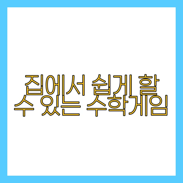 가정에서 쉽게 활용할 수 있는 수학게임 몇 가지를 소개하겠습니다. 첫 번째로, '수학 뽑기 게임'이 있습니다. 고민할 필요 없이 아이가 좋아하는 캐릭터나 주제를 뽑아볼 수 있는데, 예를 들어, 5가지 캐릭터마다 별도의 수학 문제를 주는 것입니다. 아이가 문제를 맞출 경우 캐릭터의 이름을 카드에 쓰고, 10문제를 맞췄을 때 보상을 주면 아이의 흥미를 더욱 높일 수 있습니다. 이러한 게임은 수학적 사고를 길러줄 뿐만 아니라 집중력과 문제 해결 능력까지 키워줍니다!