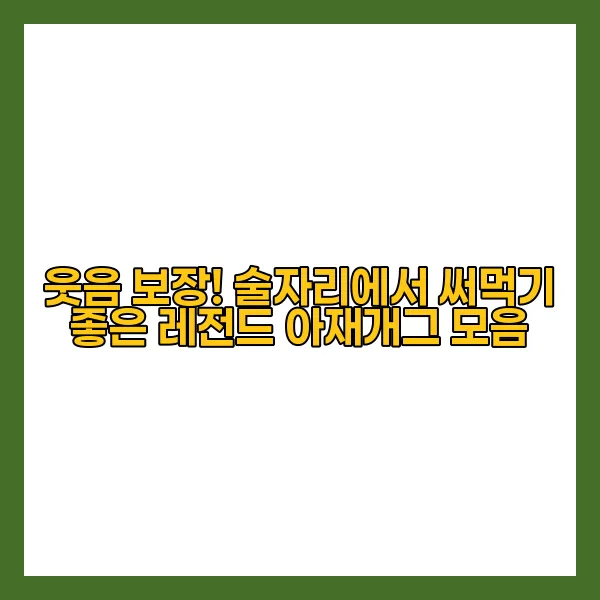 아재개그는 단순한 웃음을 넘어, 한국 사회의 유머 문화에서 독특한 위치를 차지하고 있습니다. 통계에 따르면, 70% 이상의 사람들이 술자리에서 유머를 통해 기분 전환을 경험한다고 합니다. 이러한 유머 중에서도 아재개그는 그 특유의 엉뚱함과 절묘한 타이밍으로 많은 이들에게 사랑받고 있습니다. 여기, 술자리에서 빛을 발할 레전드 아재개그 베스트 5를 소개합니다.