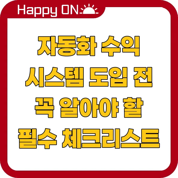 자동화 수익 시스템 도입 전 꼭 알아야 할 필수 체크리스트