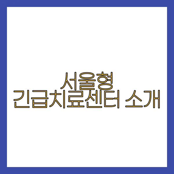 서울형 긴급치료센터 소개