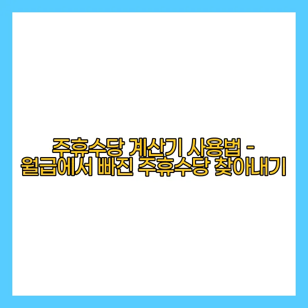 주휴수당 계산기를 사용하여 효율적으로 여러분의 월급에서 누락된 주휴수당을 찾아내는 방법을 안내해 드리겠습니다. 주휴수당은 근로자의 권리 중 하나로, 법정근로시간을 초과하는 근무에 대한 보상으로 지급됩니다. 따라서 이를 정확하게 계산하는 것이 매우 중요합니다!