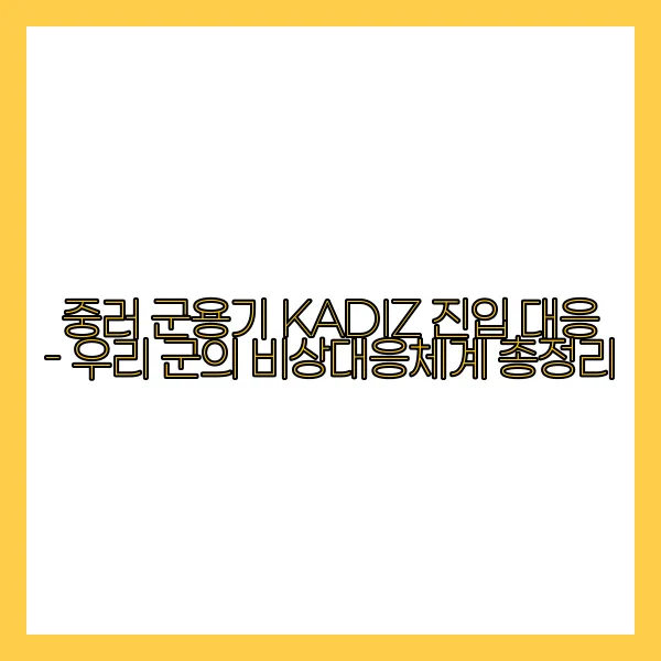 우리 군의 비상대응체계는 언제 어디서든 발생할 수 있는 위협에 신속하게 대응할 수 있도록 설계된 시스템이랍니다. 특히 최근 중러 군용기의 KADIZ 진입 사건은 이러한 체계의 중요성을 다시 한 번 일깨워 주었죠. KADIZ(한국 방공식별구역)는 우리나라의 공역을 보호하기 위한 매우 중요한 지역인데, 이에 대한 심각한 도전이 있다는 것은 간과할 수 없는 문제입니다.