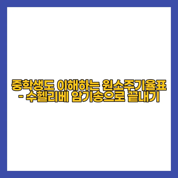 이처럼 수헬리베 암기송은 여러 기능적인 요소와 즐거운 음악적 경험을 통해 원소주기율표를 효과적으로 학습할 수 있는 강력한 도구가 됩니다. 중학생들도 쉽게 따라 할 수 있도록 구성되어 있으니, 이 기회를 놓치지 마세요! 이렇게 다양한 구성요소들을 통해 원소를 가볍고 즐겁게 암기할 수 있는 방법이 주어진 것은 참으로 놀라운 일입니다. 🌠