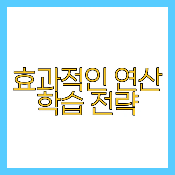 이러한 전략을 통합하여 학생들의 연산 학습 경험을 풍부하게 하는 것이 중요합니다. 마지막으로, 이 모든 전략은 지속적으로 점검하고 수정하며 학생들의 반응에 따라 최적화되어야 합니다. 데이터와 실질적 경험을 바탕으로 한 학습 전략은 학생들이 수학을 보다 즐기고, 효율적으로 뛰어난 사고력을 갖출 수 있도록 도와줄 것입니다.