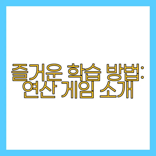 연산 학습을 매우 즐겁고 효과적으로 할 수 있는 방법 중 하나가 바로 '연산 게임'입니다! 최신 연구에 따르면, 게임을 통한 학습은 전통적인 학습 방식보다 기억력을 20% 더 향상시킬 수 있다고 합니다. 이는 아이들이 배우는 과정에서 동시에 즐거움을 느끼기 때문에 자연스레 집중력도 높아지기 때문입니다. 그럼 어떤 연산 게임이 아이들의 수학 사고력을 높이는 데 도움이 될까요?