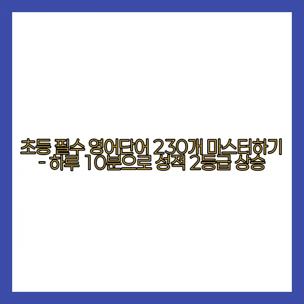 영어는 이제 우리 삶에서 필수적인 요소로 자리 잡았습니다. 특히 초등학생의 경우, 초등 필수 영어단어 230개를 마스터하면 성적을 한 단계 끌어올리는 데 큰 도움이 됩니다. 하루 10분의 짧은 시간 투자로도 충분한 성과를 이룰 수 있음을 아는 것이 중요합니다. 이 글에서는 효율적인 학습 계획을 세우는 방법, 짧은 시간 안에 단어를 암기하는 팁, 그리고 실제 성적 향상을 이룬 성공 사례를 통해 여러분의 영어 학습 여정을 지원하고자 합니다. 효과적으로 학습하고 목표를 성취하는 데 필요한 노하우를 함께 알아보도록 하겠습니다.