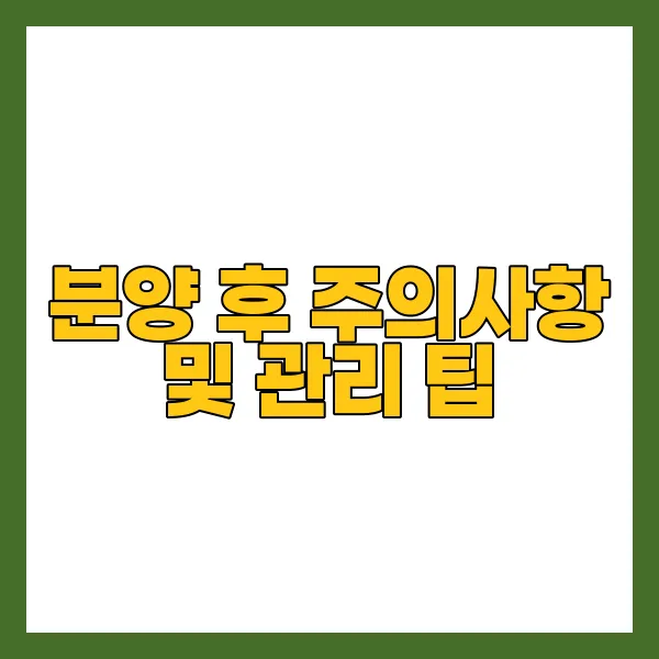 이렇듯 분양 후 주의사항과 관리 팁은 아파트 생활을 더욱 원활하게 만들어주는 필수 요소입니다. 신중하게 관리하고, 이웃과 함께하는 즐거운 경험을 쌓아가시길 바랍니다.