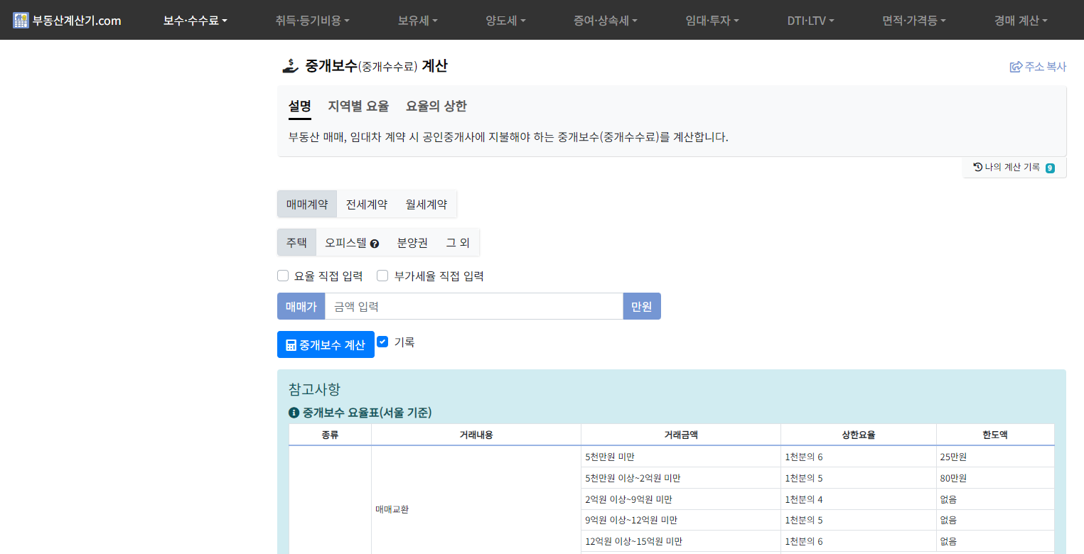 [추천] 중개보수(중개수수료) 복비 부동산계산기