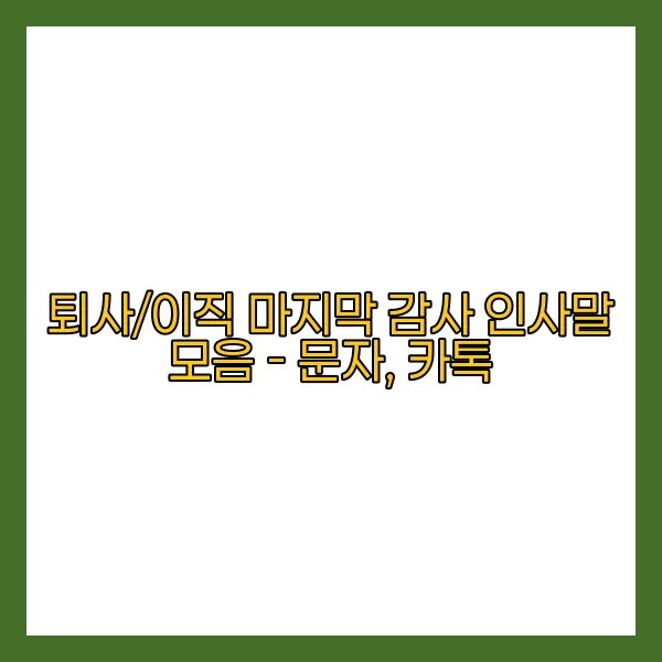 각 상황에 따른 인사말은 이직 후에도 좋은 관계를 유지하는 데 큰 도움이 됩니다. 이메일, 문자, 카카오톡 등을 통해 상황에 맞는 인사말을 잘 전달하는 것이 중요합니다. 퇴사라는 과정은 아쉬움이 크지만, 함께한 시간에 대한 감사함과 앞으로의 좋은 관계를 다짐하는 것이 퇴사 인사의 본질입니다. 필요하다면 이러한 인사말을 미리 준비해 보시는 것도 좋습니다. 특히, 예상치 못한 상황에서 미처 준비하지 못한 인사말을 전할 때는 더욱 효과적입니다. 😊