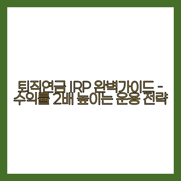 퇴직연금 IRP 완벽가이드 - 수익률 2배 높이는 운용 전략