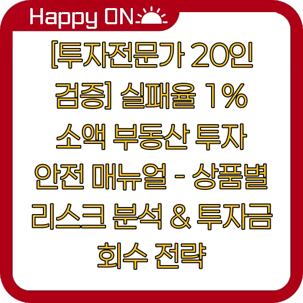 [투자전문가 20인 검증] 실패율 1% 소액 부동산 투자 안전 매뉴얼 - 상품별 리스크 분석 & 투자금 회수 전략