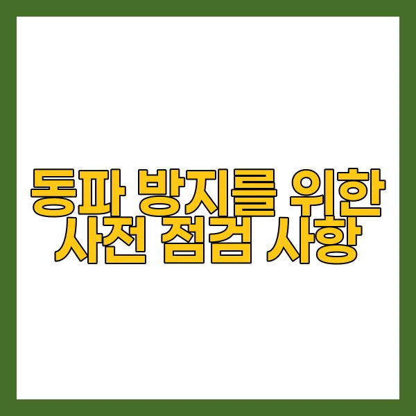 이처럼 동파를 예방하기 위한 사전 점검 사항들은 매우 다양합니다. 철저한 준비와 점검만으로도 동파를 방지할 수 있는 가능성이 커지니, 꼭 이러한 점검 사항을 기필코 확인해 보시고 안전한 겨울철을 보내셔야 합니다. 😊✨