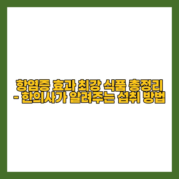 항염증 효과 최강 식품은 현대인의 건강을 지키는 중요한 요소로 자리 잡고 있습니다. 염증은 많은 만성 질환의 원인이 되므로, 이를 예방하고 관리하는 방법을 아는 것은 필수적입니다. 본 포스팅에서는 한의사의 전문적인 시각에서 항염증 식품을 소개하고, 이들의 효과적인 섭취 방법 및 주의사항에 대해 알아보겠습니다. 건강한 삶을 위한 실천 팁도 함께 제공하니, 주의 깊게 읽어보시기 바랍니다. 이 정보를 통해 여러분의 건강이 한층 개선되기를 바랍니다.