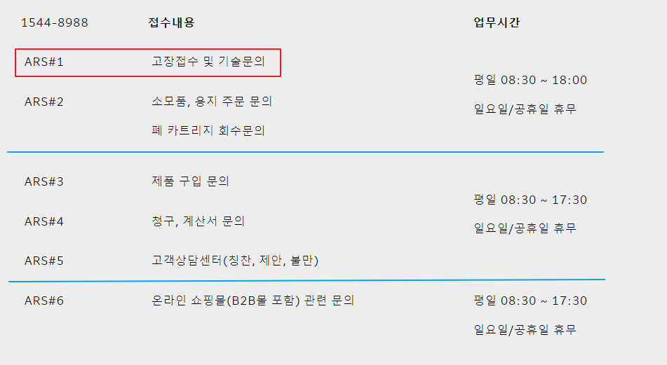소형프린터/소형복합기 서비스 요청, 기술상담 ===> 소형제품 위주 상담