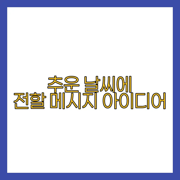 따라서, 겨울철은 소통과 관심의 기회를 제공하는 특별한 시기라 할 수 있습니다. 그러므로 여러분도 차가운 바람이 불어오는 오늘, 따뜻한 메시지를 전해보세요. 그러면 상대방의 하루가 분명히 따뜻해질 것입니다. 다양한 표현으로 마음을 전하는 즐거움을 느껴보시기 바랍니다.