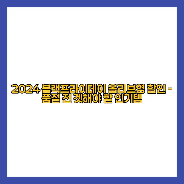 2024 블랙프라이데이는 많은 쇼핑객들의 기대를 한 몸에 받고 있습니다. 특히 올리브영의 할인 이벤트는 뷰티 및 헬스케어 제품을 찾는 이들에게 절호의 기회가 됩니다. 세일 일정과 품절 위험 아이템을 미리 파악하여 스마트한 쇼핑을 준비하는 것이 중요합니다.