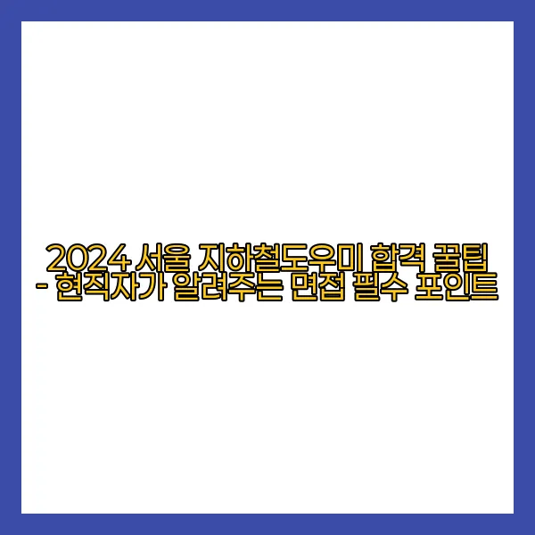 2024 서울 지하철도우미 면접 준비는 그만큼 중요합니다. 철저한 준비가 좋은 결과로 이어지기 때문입니다.