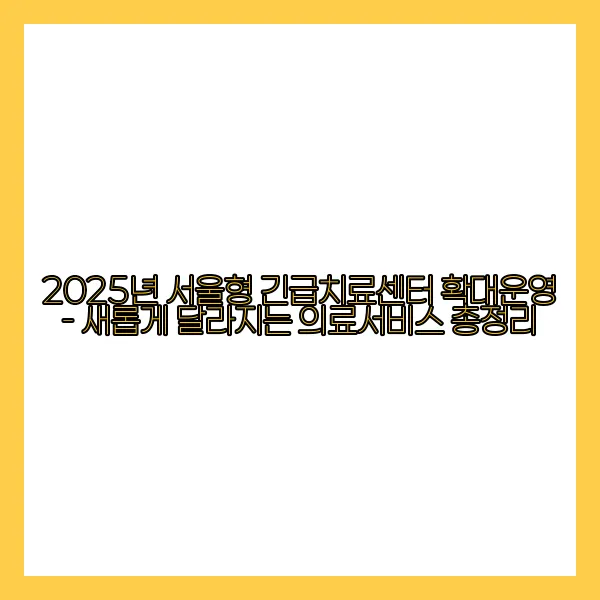 2025년 서울형 긴급치료센터 확대운영 - 새롭게 달라지는 의료서비스 총정리