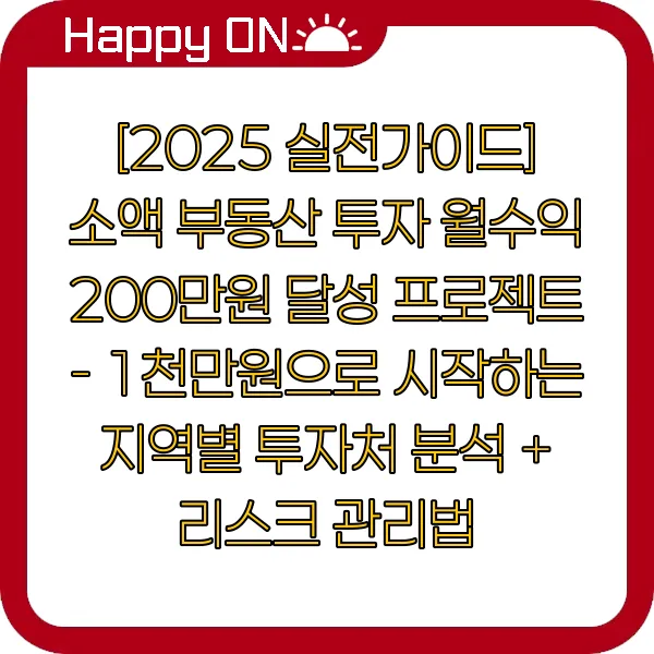 [2025 실전가이드] 소액 부동산 투자 월수익 200만원 달성 프로젝트 - 1천만원으로 시작하는 지역별 투자처 분석 + 리스크 관리법