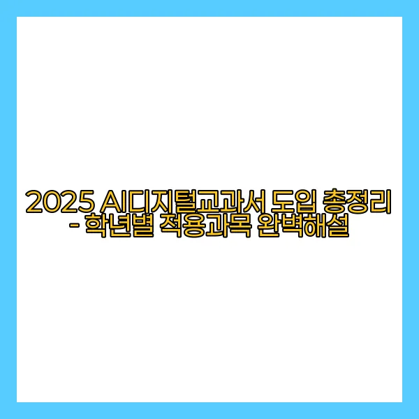 AI 디지털교과서는 2025년부터 도입되는 혁신적인 교육 시스템으로, 각 학년별로 적용되는 과목이 체계적으로 구성되고 있습니다. 이러한 변화는 학생들에게 맞춤형 학습 경험을 제공하고, 교육의 질을 향상시킬 것으로 기대됩니다. 😃