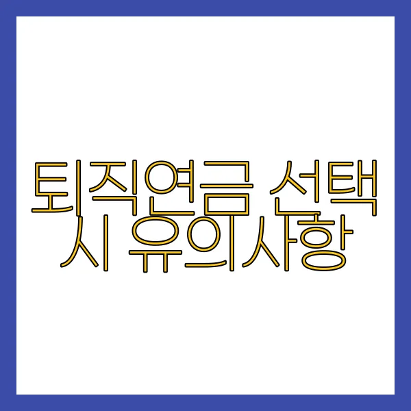 퇴직연금을 선택할 때 이러한 유의사항을 고려하여, 보다 안전하고 유리한 조건으로 결정을 내리시기 바랍니다. 재정적으로 안정된 미래를 위해 신중히 선택하는 과정이 필요합니다. 🌟