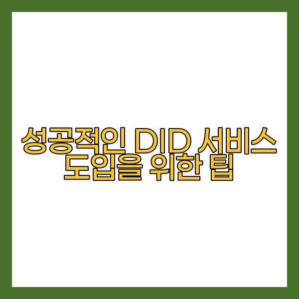 이러한 팁들을 체계적으로 적용하면 DID 서비스의 도입이 보다 원활하고 성공적으로 이루어질 수 있습니다. 사용자에게 안전하고 신뢰성 있는 서비스를 제공하는 것이 바로 기업의 지속적인 성장과 발전으로 이어지기 때문입니다.