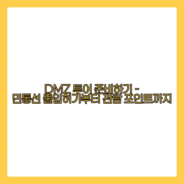 DMZ 투어한국의 역사와 현재를 이해하는 데 있어 중요한 경험입니다. 그러나 이 투어를 준비하기 위해서는 민통선 출입허가 절차를 이해하는 것이 first step입니다. 올바른 준비물을 갖추고 유의해야 할 팁을 아는 것도 매우 중요한 부분입니다. 또한, 관람 포인트를 미리 파악하면 더욱 의미 있는 투어가 될 것입니다. 마지막으로, 투어 후 체크해야 할 사항을 알고 있으면 준비 과정이 한층 수월해집니다. 이 글에서는 DMZ 투어가 원활하게 이루어질 수 있도록 각 단계를 상세히 안내해드리겠습니다.