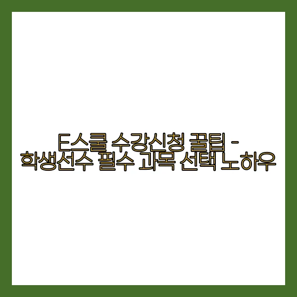 학생선수 여러분, E스쿨에서의 수강신청은 여러분의 학업과 운동을 균형 있게 발전시키는 데 중대한 역할을 합니다. 필수 과목 선택은 그 첫걸음이며, 잘못된 선택은 큰 후회를 남길 수 있습니다. 어떤 과목이 여러분의 종합적인 성장을 도울 수 있을지 고민해 보신 적이 있나요? 이 글에서는 효과적인 수강신청 전략과 과목 선택 시 유의해야 할 사항들명확하게 정리해 드리겠습니다. 또한, 선배들이 추천하는 필수 과목을 통해 여러분의 선택에 실질적인 도움을 드리고자 합니다. 이 정보를 통해 여러분의 E스쿨 수강신청이 더욱 원활히 진행되길 바랍니다.